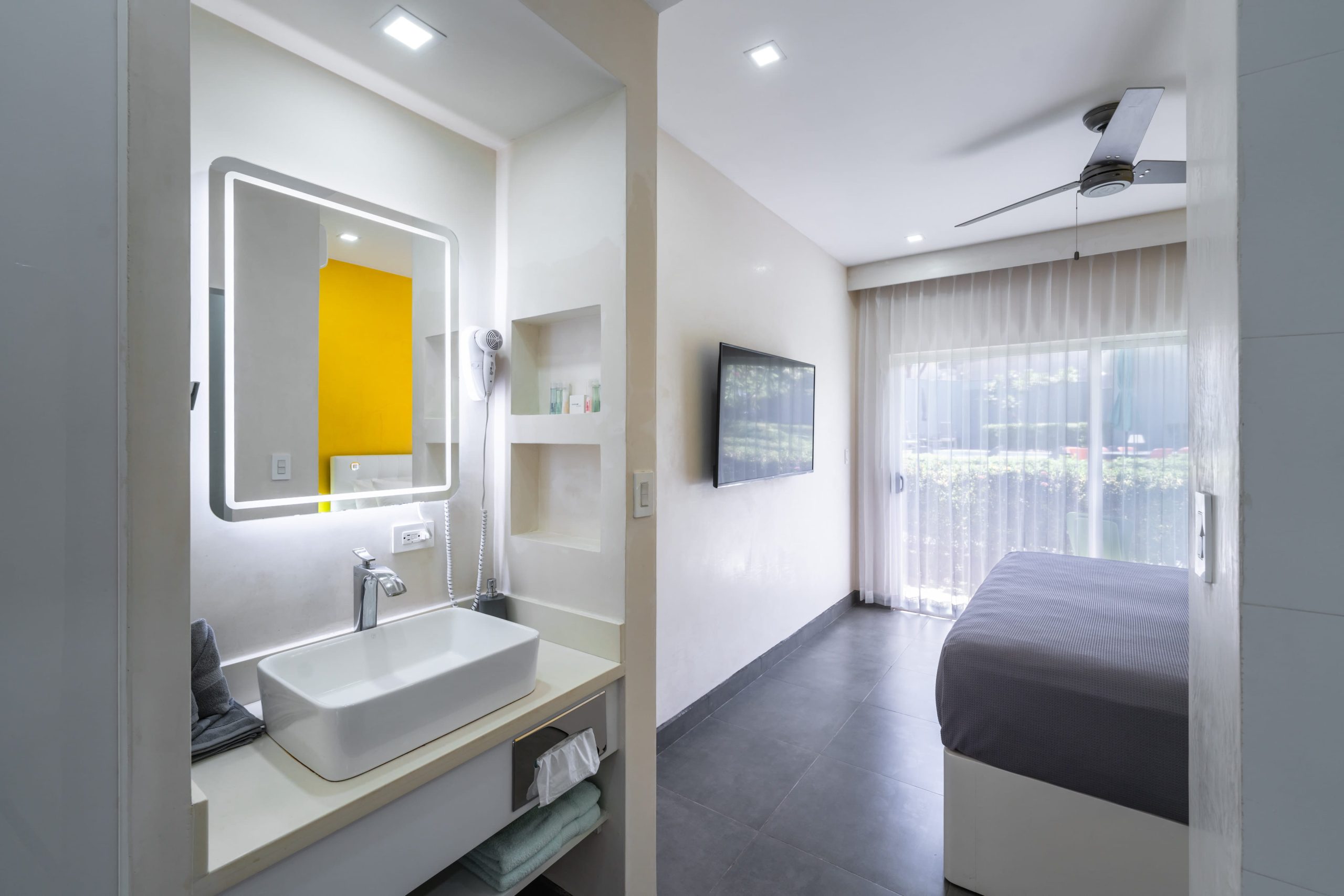 Our Terrace King rooms feature an oversized King size bed, perfect for couples. Situated on the ground floor, each bedroom has its own terrace, 55 inch Smart TV, and offers a front row seat to the action!